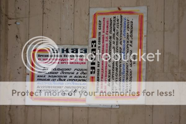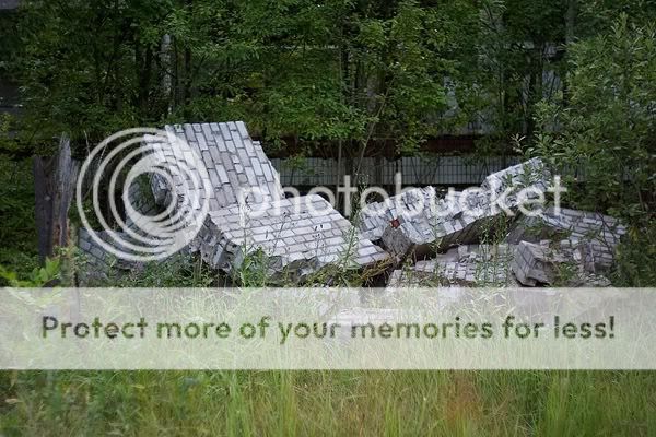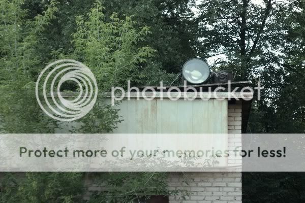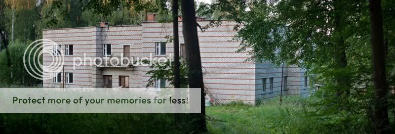 Вот. А дальше мы вышли из подвала, солнце уже зашло за деревья, мы подошли к главному входу этого здания. Глянули внутрь - а там свет... Ну думаем малоли чудес? И в затопленных бомбарях рабочие лампочки в воде светятся. Подёрггали дверки, додёргали окна.. _izum_ упорно дёргает зашторенное окно, за которым тоже свет(!) И тут шторку кто то начинает отодвигать изнутри. Ясно дело дали дёру, ну и собсно и смотреть то было больше нечего. темнело. Думали до москвы не успеем, но нас любезно одвезли дачники. Вот так. Надёеемся всё таки не сбиться с дороги и найти искомый изначально пионерлагерь в другой раз.