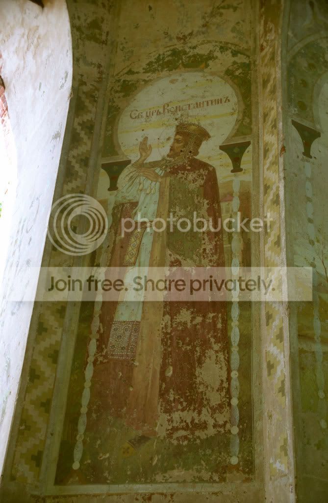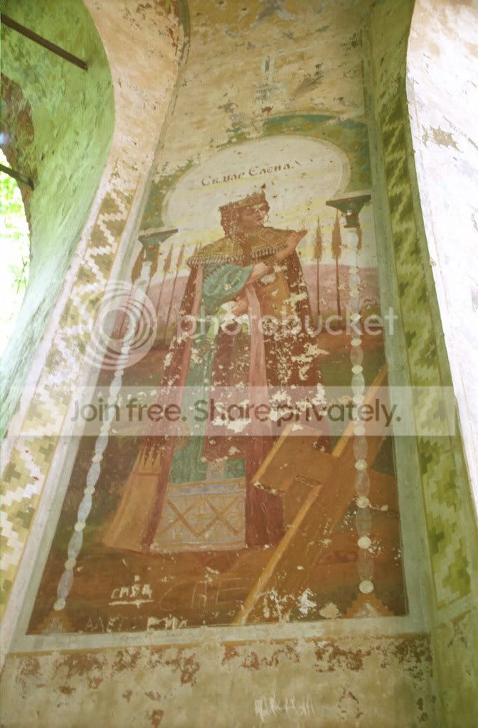 Сохранилось несколько фресок. Эта - с Николаем Чудотворцем - висит над входом.