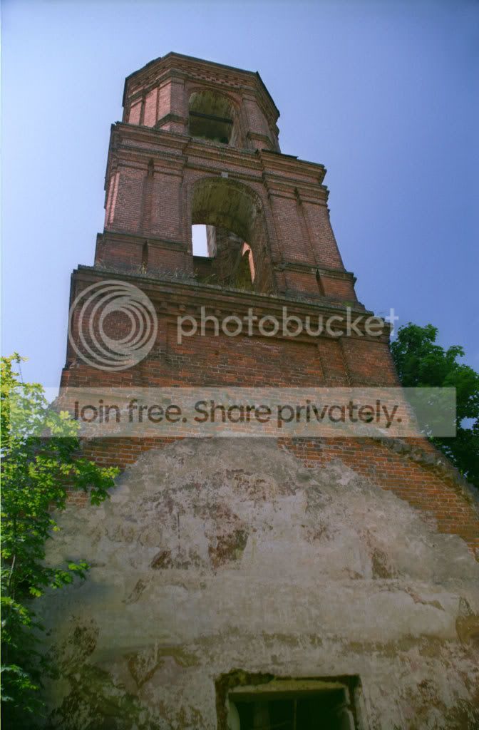 Паперти нет, громадных кованых дверей нет (растащили, небось, еще в 20-х годах), стекла выбиты. Вся центральная часть храма разрушена почти до основания.